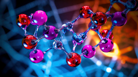 This captivating image features vibrant molecular structures set against a reflective surface, symbolizing innovation in science and research. Perfect for educational and scientific contexts.