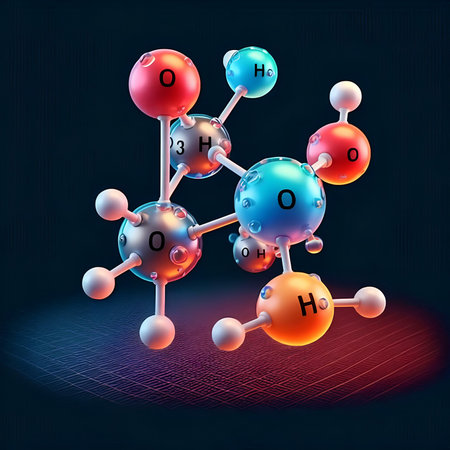 This visual representation showcases the glucose molecule in its ring form, emphasizing the orientation of the hydroxyl groups through soft shading techniques that create depth.