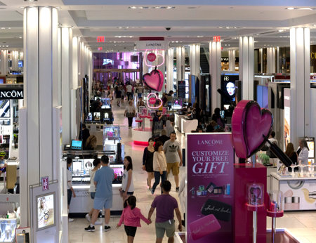NEW YORK, NEW YORK, USA - AUGUST 6: Inside Macy's Department store with shoppers. Taken August 6, 2017 in New York.