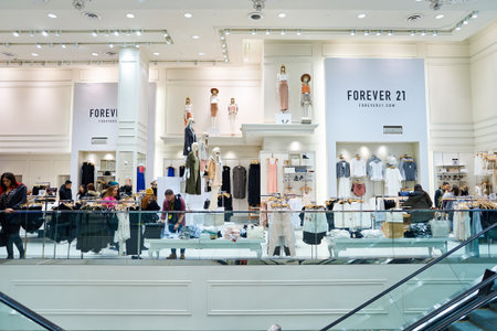 NEW YORK - MARCH 19, 2016: inside of Forever 21 in New-York. Forever 21 is an American chain of fast fashion retailers with its headquarters in Los Angeles.