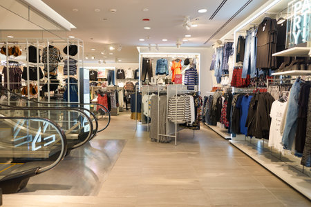 HONG KONG - CIRCA DECEMBER, 2019: interior shot of H and M store in Hong Kong.