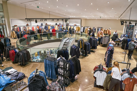 MOSCOW, RUSSIA - CRICA SEPTEMBER, 2018: interior shot of a Zara store in shopping center in Moscow.