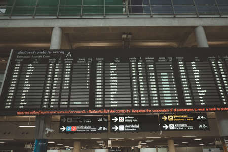 Samutprakarn, Thailand - October 7, 2020 : An electronic arrivals display board in Suvarnabhumi Airport, Samutprakarn, Thailand.