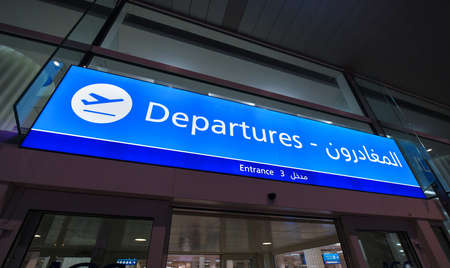 DEPARTURES - Dubai Airport sign, UAE architecture