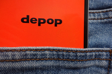 KONSKIE, POLAND - JUNE 12, 2018: Depop logo displayed on smartphone hidden in jeans pocket