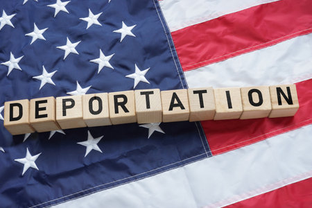 United States deportation is shown using a text and US flag as legal concept