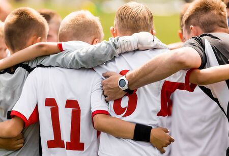 Happy Sporty Kids in a Team. Players in a Team Huddling with Coach Before the Tournament Final Match