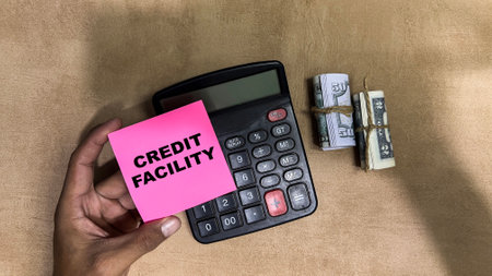 Concept of Credit Facility write on sticky notes isolated on Wooden Table.