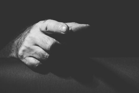 Male hand in the dark, black and white photo, fear and horror, a hand asking for help