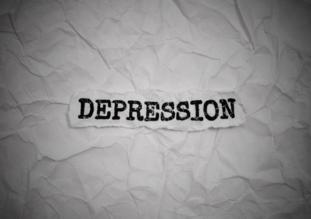 Crumpled piece of paper with word Depression on a crumpled paper background.