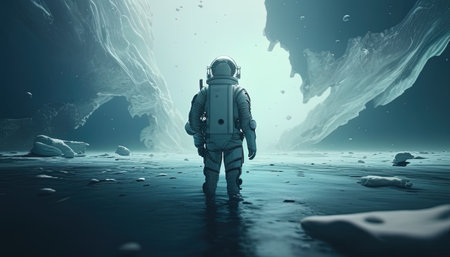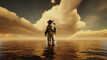 astronaut standing in the strange sea digital art illustration, Generative AI