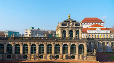 View to the historical buildings of the famous Zwinger palace in Dresden, Germany.