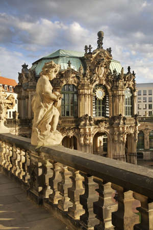 Baroque architecutre in Dresden city, Saxony state in Germany. Old Zwinger palace with unique architecture, decorations and sculpture.