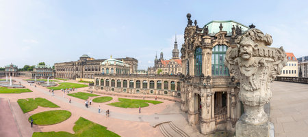 DRESDEN, GERMANY - JUNE 11, 2014 Panoramic view of Zwinger Der Dresdner Zwinger , part of the historic heart of Dresden, rebuilt after the second world war is the most popular monument in city