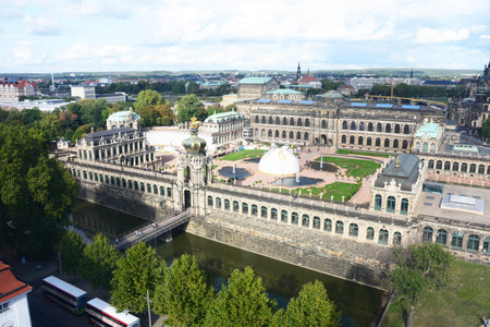 Dresden, Saxony, Germany - September 26, 2019: Aerial view over The Zwinger in the city of Dresden, Germany - Zwinger Palace is nowadays a museum complex that contains the Old Masters Picture Gallery