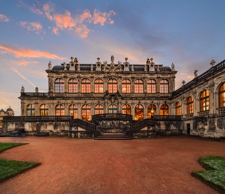Morning in famous Zwinger palace (Der Dresdner Zwinger) Art Gallery of Dresden. Colorful spring scene in Dresden, Saxony, Germany, Europe. Artistic style post processed photo.