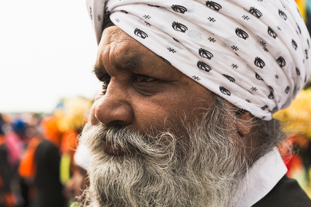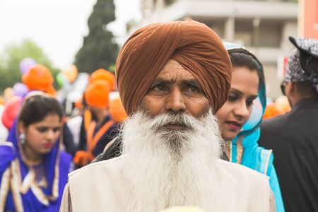 BRESCIA, ITALY - APRIL 15, 2017: Sikh man takes part in the annual Vaisakhi parade to celebrate the first harvesting of the year and the creation of Khalsa