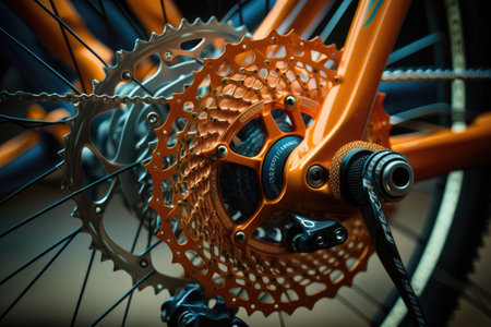 Detailed close up of bicycle chain and gears revealing mechanical intricacies