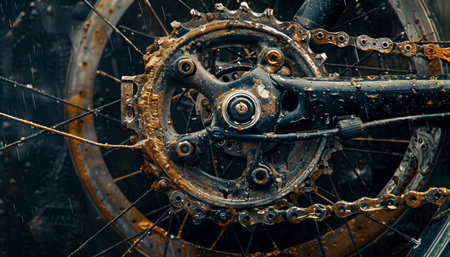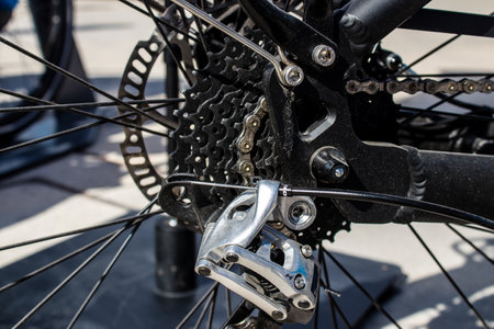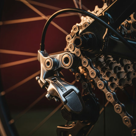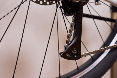 Detailed view of bicycle chain and gears, emphasizing mechanical components for summer olympic games