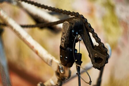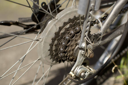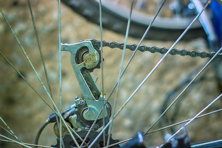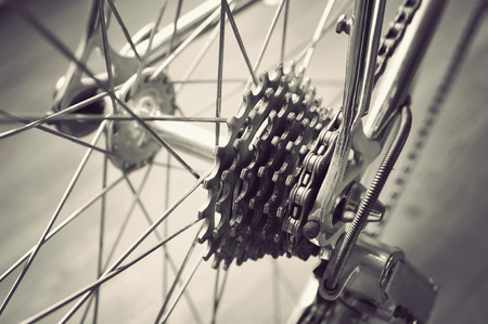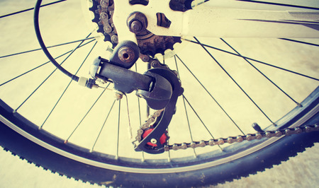 Part of old bicycle wheel, derailleur, and chain (vintage effect)
