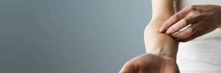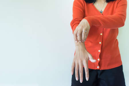 Woman having itchy and scratching her hand