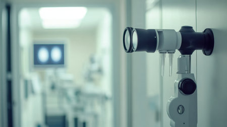 close up photo of a otoscope and ophthalmoscope hanging on a doctor's office wall
