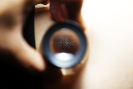 Diagnosis of neoplasms, moles with a dermatoscope, close-up