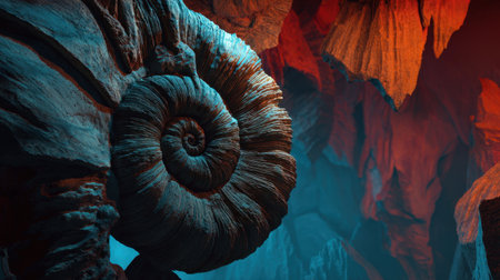 artistic macro shot of ammonite fossil details, created with generative ai