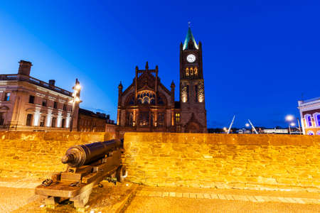 Guildhall in Derry seen at night. Derry, Northern Ireland, United Kingdom.