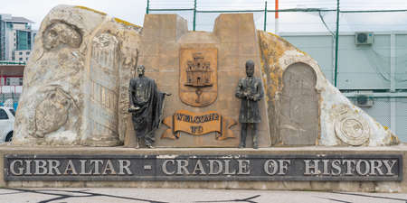 Gibraltar, UK - January 7, 2020: Welcoming monument on the entrance to the british overseas territory Gibraltar