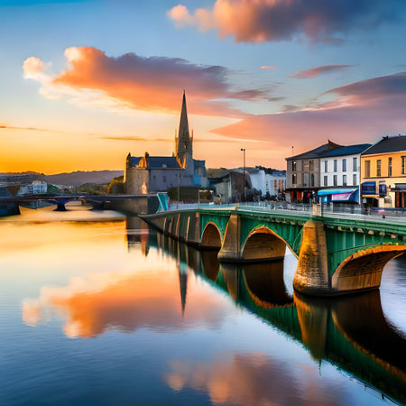 View of the River Lee at sunset in Cork, Ireland