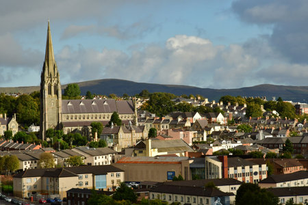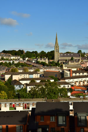 Stunning town view with St Eugene's Cathedral in Derry, Northern Ireland.