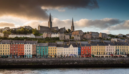 Picturesque town of Cobh at sunset in Ireland, traditional houses with view to Cork Harbour
