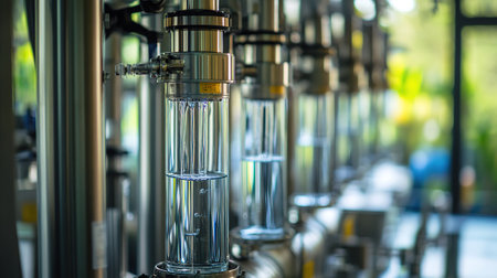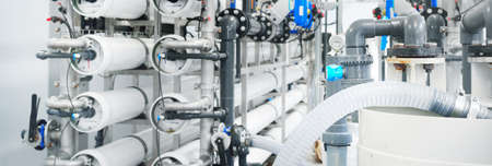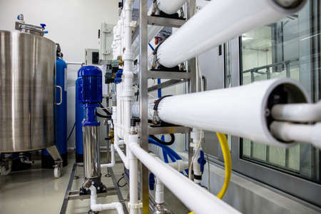 Water purification filter equipment in plant workshop.