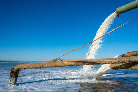Fragment of salt extraction at lake Baskunchak. Astrakhan region, Russian Federation.