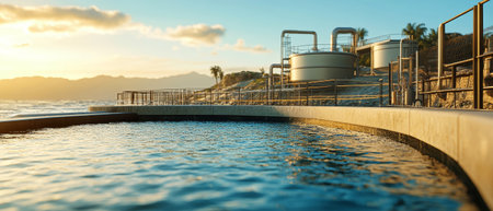 Modern Seawater Desalination and Water Treatment Facility by the Ocean