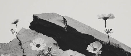 Show a close-up of delicate wildflowers reaching toward the sun, creating a vibrant black and white natural landscape highlighting their intricate details and textures --chaos 30 --ar 16:9 --v 6.1 Job ID: d8f00ed5-095c-43a4-a9d9-5f79427724ee