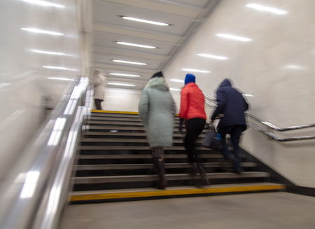 People walk the underpass in motion .