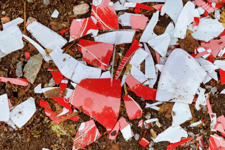 Splinters and Fragments of the broken white ware. Metaphor of a family quarrel. Broken Plate, glass. The concept of accidents in the kitchen. Pieces of shattered dishes.
