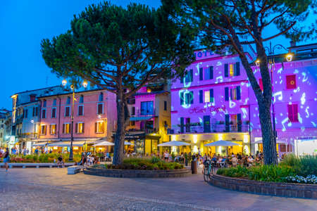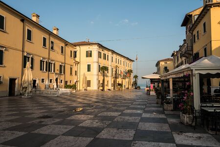 DESENZANO DEL GARDA, ITALY, JULY 23, 2019: Sunset view of Piazza Giuseppe Malvezzi in Desenzano del Garda in Italy