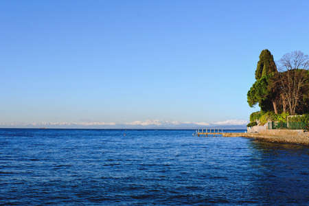 shore of Lake Garda with Alps mountain, Italy