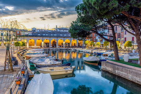 Sunset over marina at Lake Garda in Desenzano, Italy