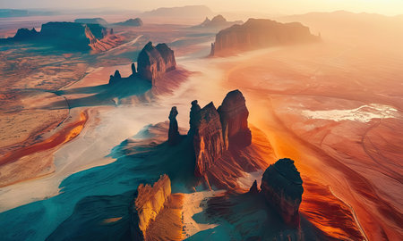 Aerial view of Monument Valley at sunrise, Arizona, USA.