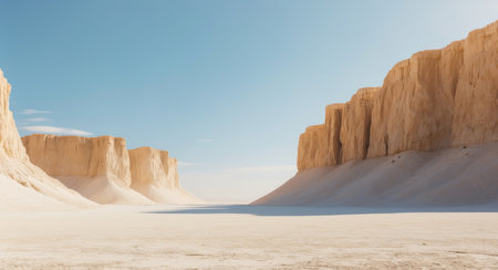 Desert landscape with sandstone cliffs and sunlit sky