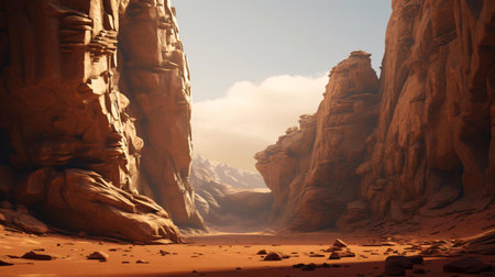 AI Generated. Dry canyon landscape with rugged cliffs and sandy floor under bright sunlight