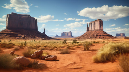 AI Generated. Majestic Arid Desert Landscape with Weathered Rock Formations and Canyons