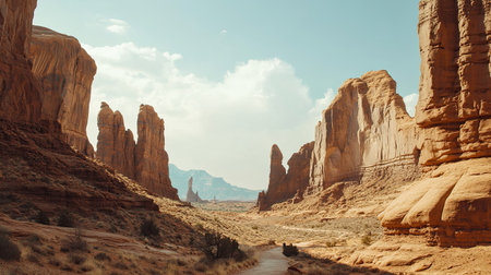 AI Generated. Majestic Canyon Landscape with Dramatic Rock Formations and a Bright Sky