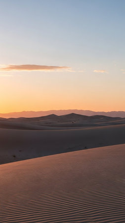 A serene desert landscape featuring soft sand dunes under a clear blue sky, perfect for nature-themed projects and evoking feelings of calmness and tranquility.