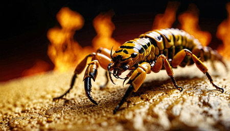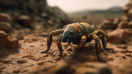 Scorpion in the sand. 3d rendering. Computer digital drawing.