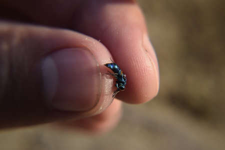big and dead beetle on the ground. The beetle lies with folded paws on its back. ... beetle in hibernation. insects after chemicals